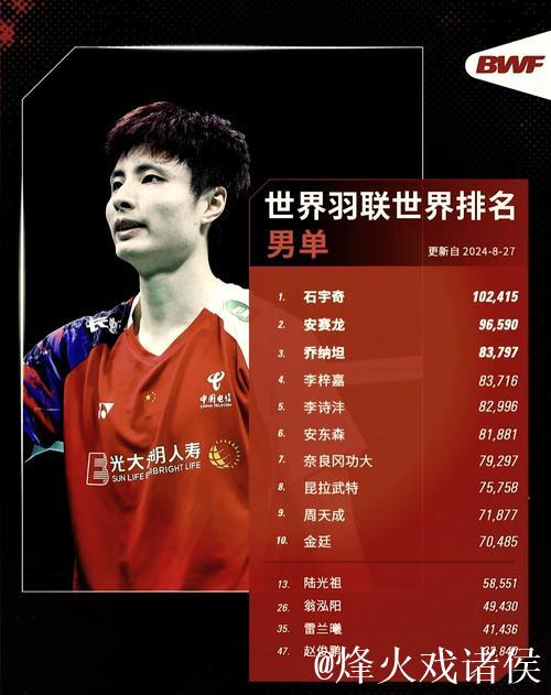 国际羽联最新排名:石宇奇领跑男单 “凤凰组合”混双登顶